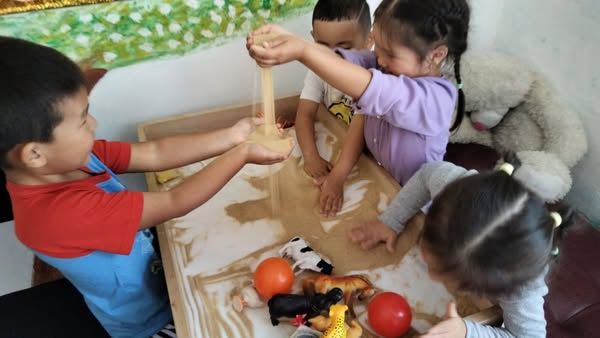 А.Асылбеков атындағы ЖББ мектебінің "Балбөбек" шағын орталығы. Жазғы сауықтыру іс-шаралардың жоспарына сәйкес "Құммен сурет салу".