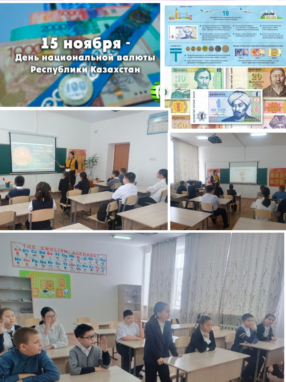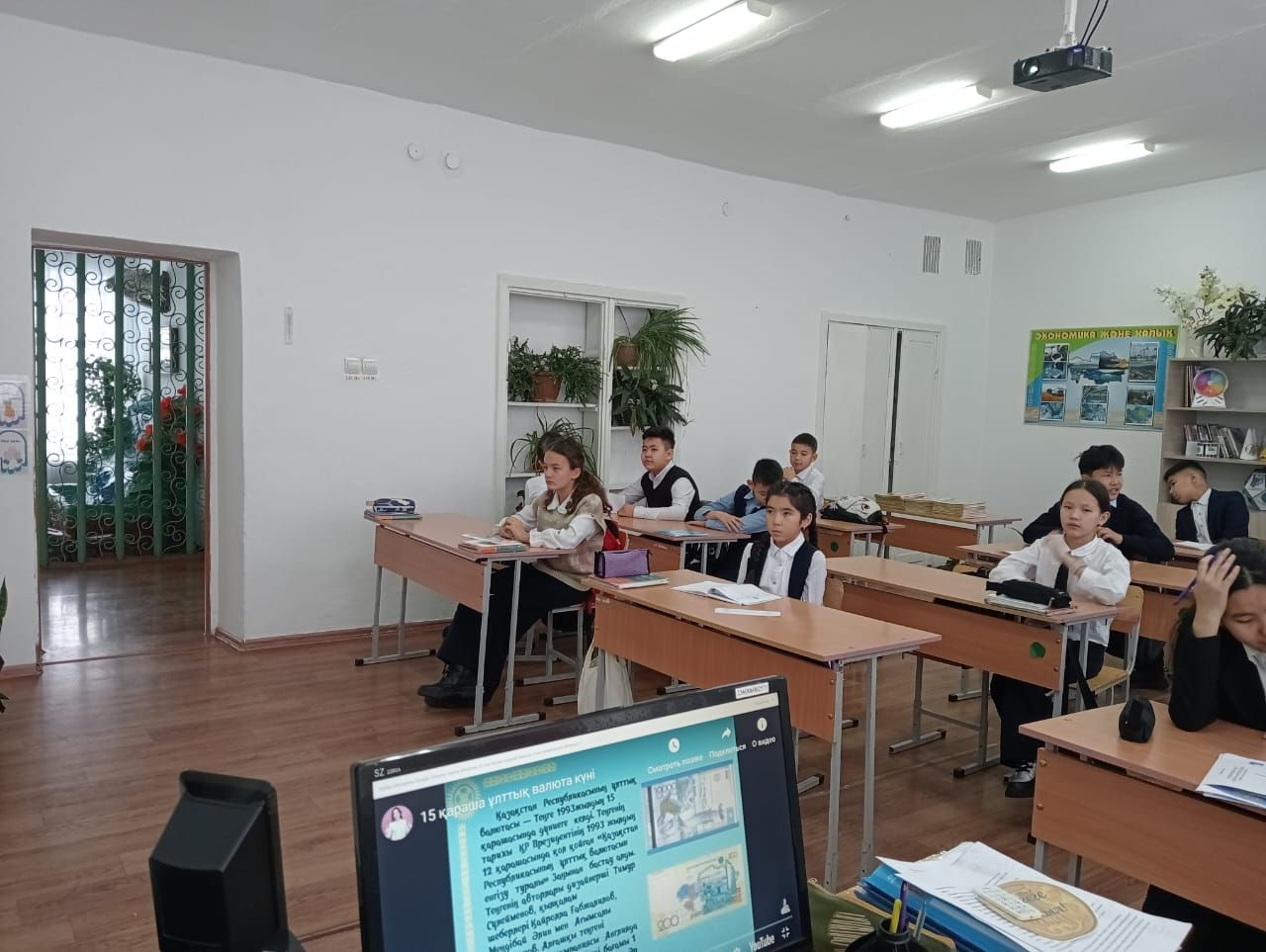 11 ноября в ОШ имени А.Асылбекова в 9-11классах прошли классные часы,посвященные дню национальной валюты. Целью классного часа было помочь учащимся определить роль и место национальной валюты -тенге…