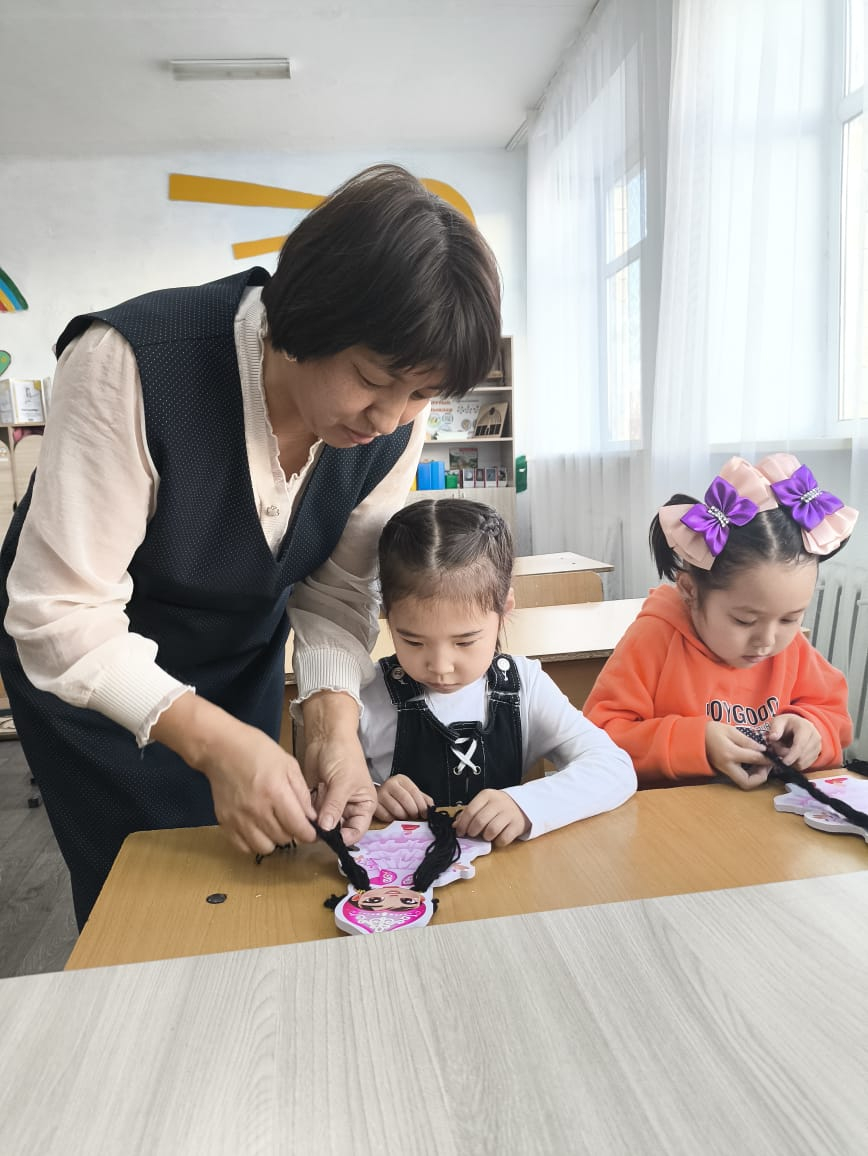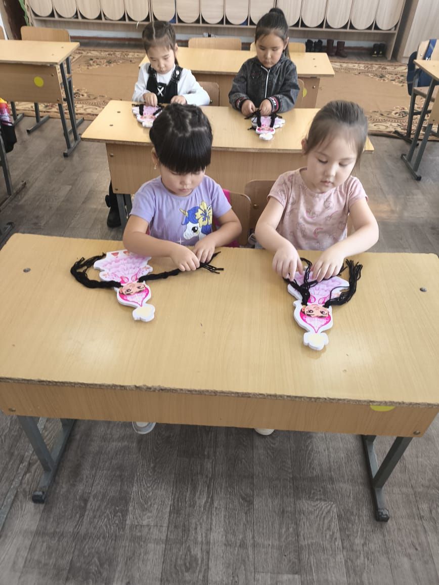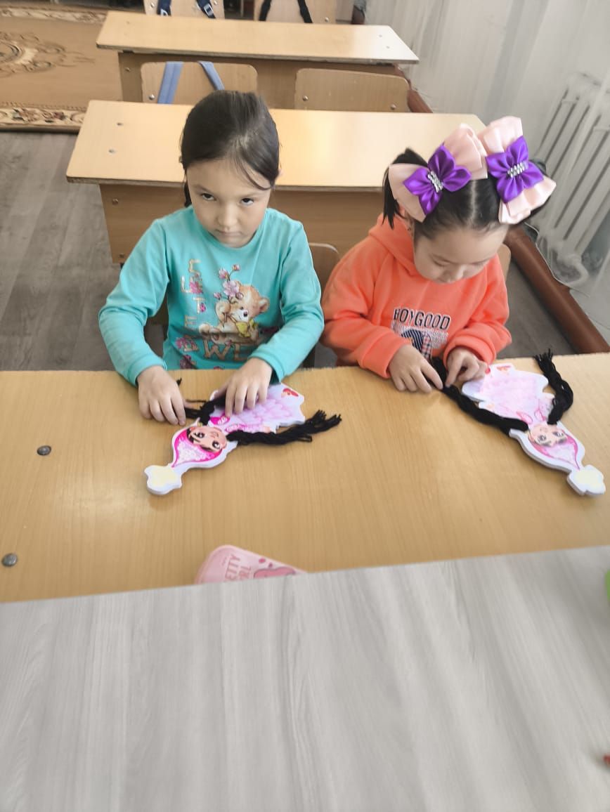 Абдолла Асылбеков атындағы ЖББ мектебінің мектепалды сыныбында "Біртұтас тәрбие" бағдарламасының "Өнегелі 15 минут" жобасы аясында балалар шаш өру , қамшы өруді үйреніп, өз білім…