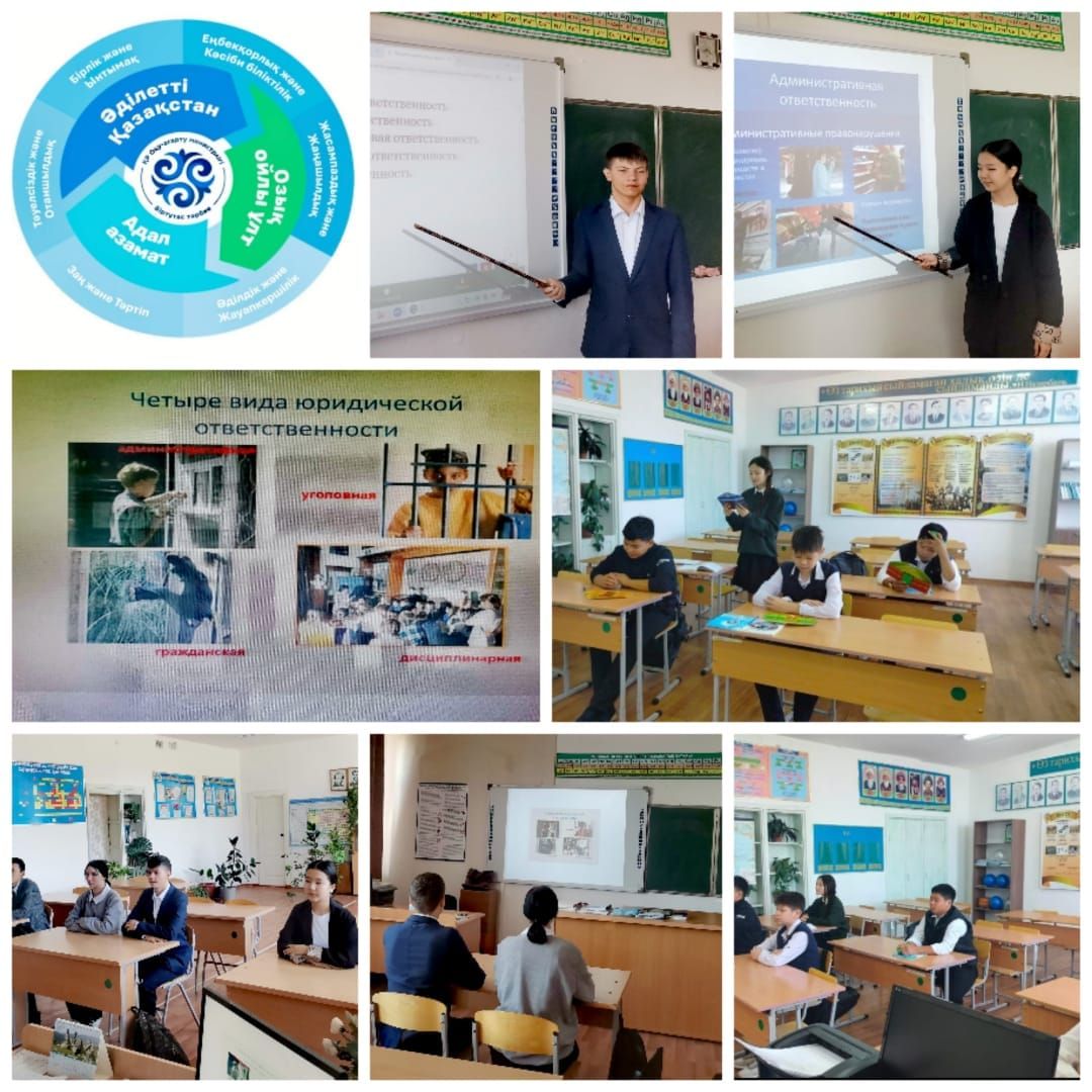 в 9-11 классах ОШ им.А.Асылбекова прошли классные часы на тему :"Виды ответственности: дисциплинарная, административная , уголовная" Цели классного часа:-формирование у детей умений постоя…