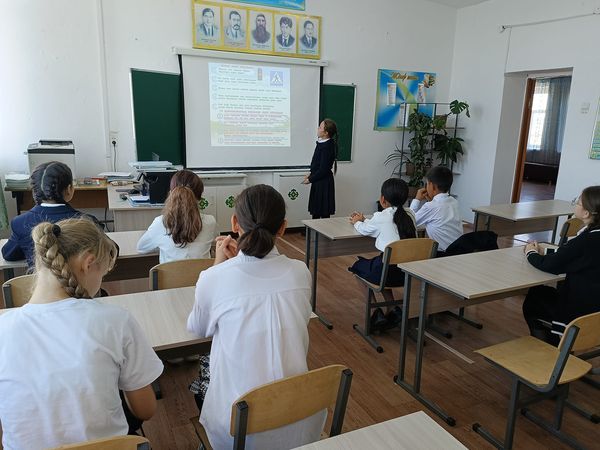 А.Асылбеков атындағы ЖББ мектебінде 7-сынып оқушыларына «Жолда жүру ережелері» тақырыбында сынып сағаты өткізілді.