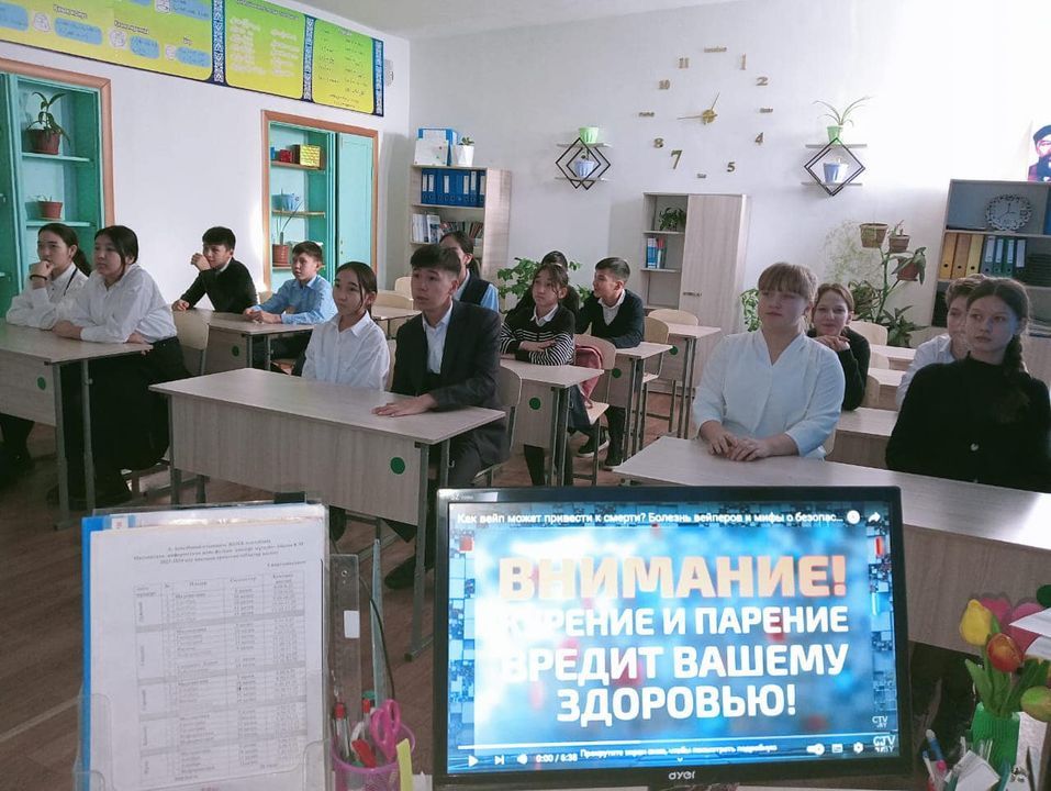 А.Асылбеков атындағы ЖББ мектебінде "Біртұтас тәрбие" бағдарламасының жоспарына сәйкес, "Өнегелі өмір" тақырыбында мектеп медбикесі Вишневецкая Н.Н. вейп туралы,электронды шыл…