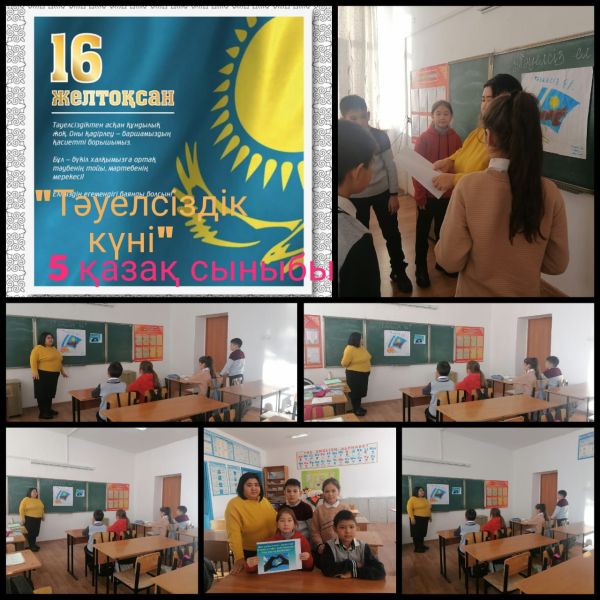 А.Асылбеков атындағы ЖББ мектебінде 16 желтоқсан Тәуелсіздік күніне орай 1-11 сынып оқушыларында "Тәуелсіз елім - кең байтақ жерім!" тақырыбында сынып сағаттары өткізілді.