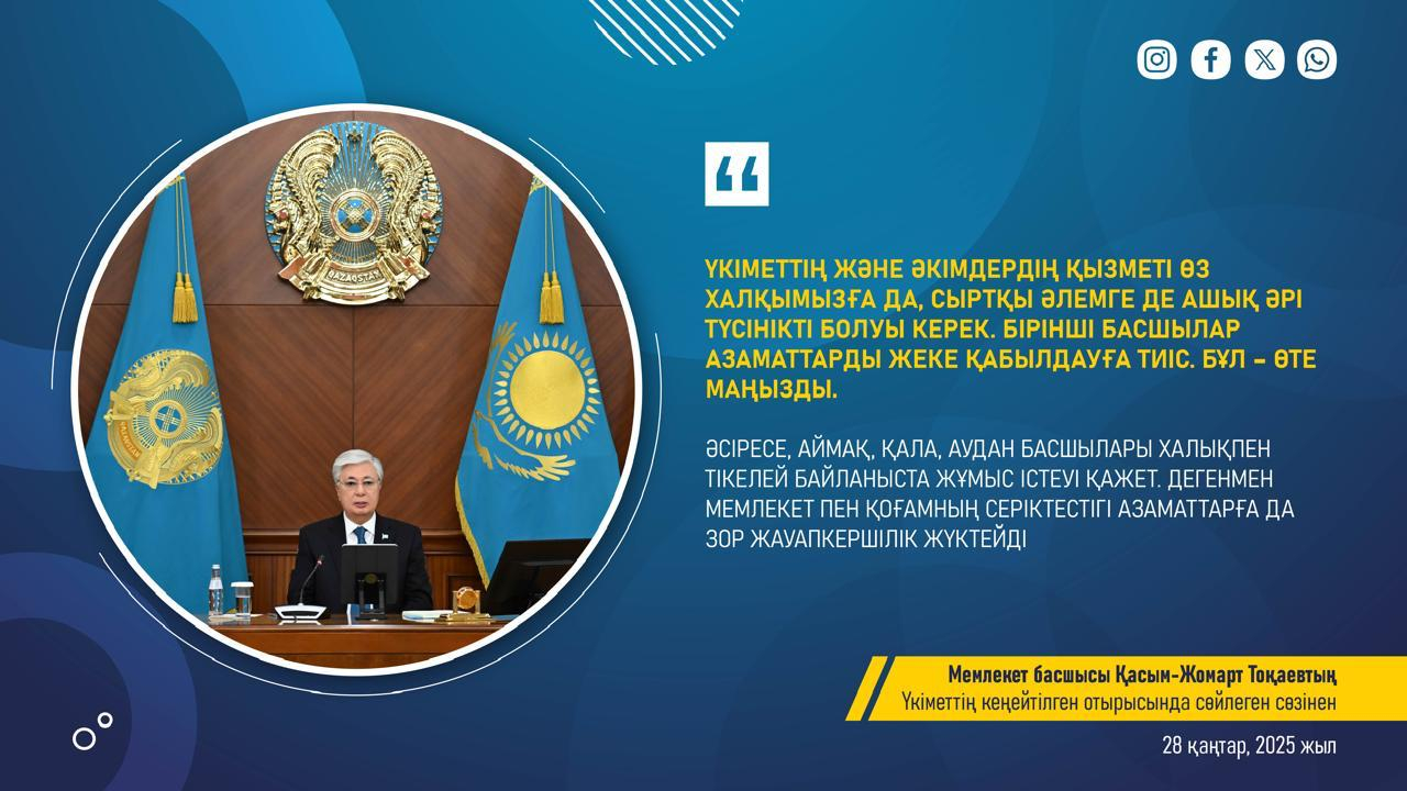 Мемлекет басшысы Қасым-Жомарт Тоқаевтың Үкіметтің кеңейтілген отырысында сөйлеген сөзінен