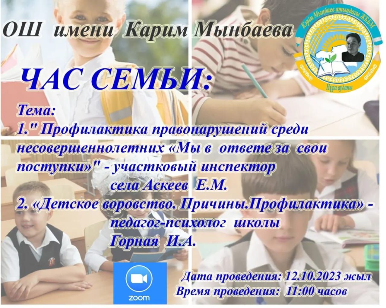 Бүгін, 12 қазан күні Кәрім Мыңбаев ЖББМ-нің психологі Горная И.А. және ауылдың участковый инспекторы Аскеев Е.М. ата- аналармен онлайн форматта кездесіп, жасөспірімдер арасындағы&n…