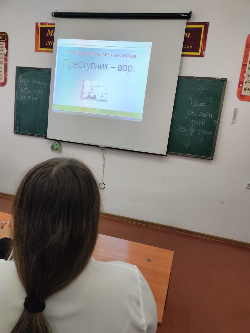 Сегодня в школе имени К.Мынбаева ,в 10 русском классе ,классный руководитель Байталякова А.Б. провела классный час "Можно ли воровать" .Цель: Профилактика преступлений и нарушений среди не…