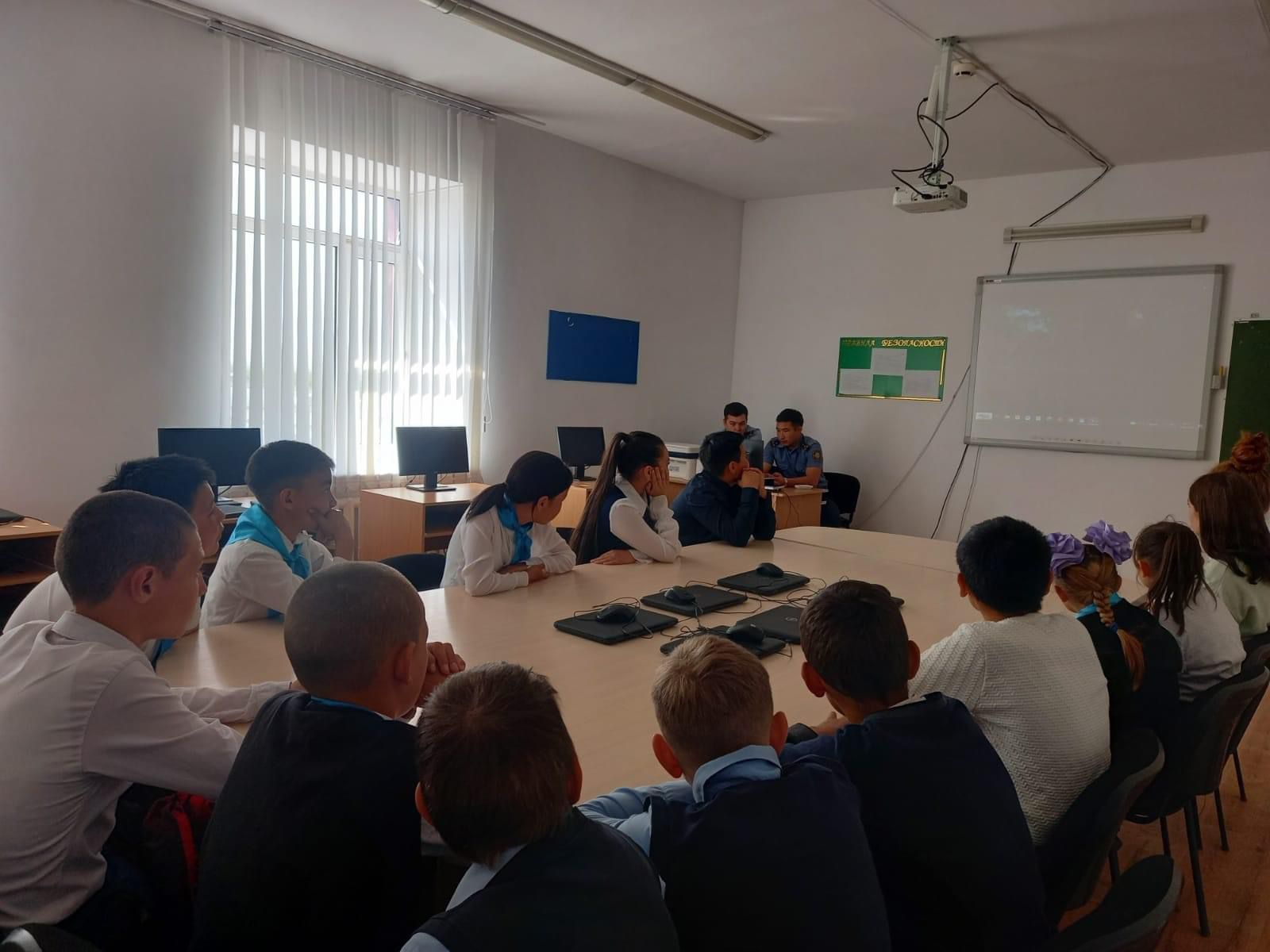 "Балалар игілігі үшін" акциясы аясында,балалардың мүдделері мен заңды құқықтарын қорғау мақсатында, участкелік инспекторы Садық Рауан мен Мереке Ұлан ,мектеп оқушыларына дәріс өткізд…