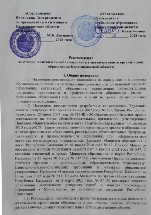 Қарағанды облысының мектептерінде ауа райы жағдайлары бойынша сабақтардың тоқтатылуы туралы ақпарат