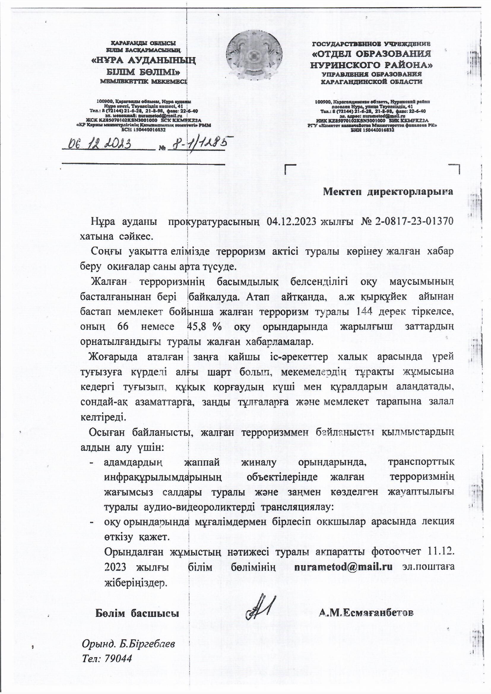 В школе 07.12.2023 года заместителем директором по воспитательной работе Маугуловой А.Б. и инспектором по антитеррору Бахтияровым В.Г. среди учащихся 5-9 классов проведена лекция об …