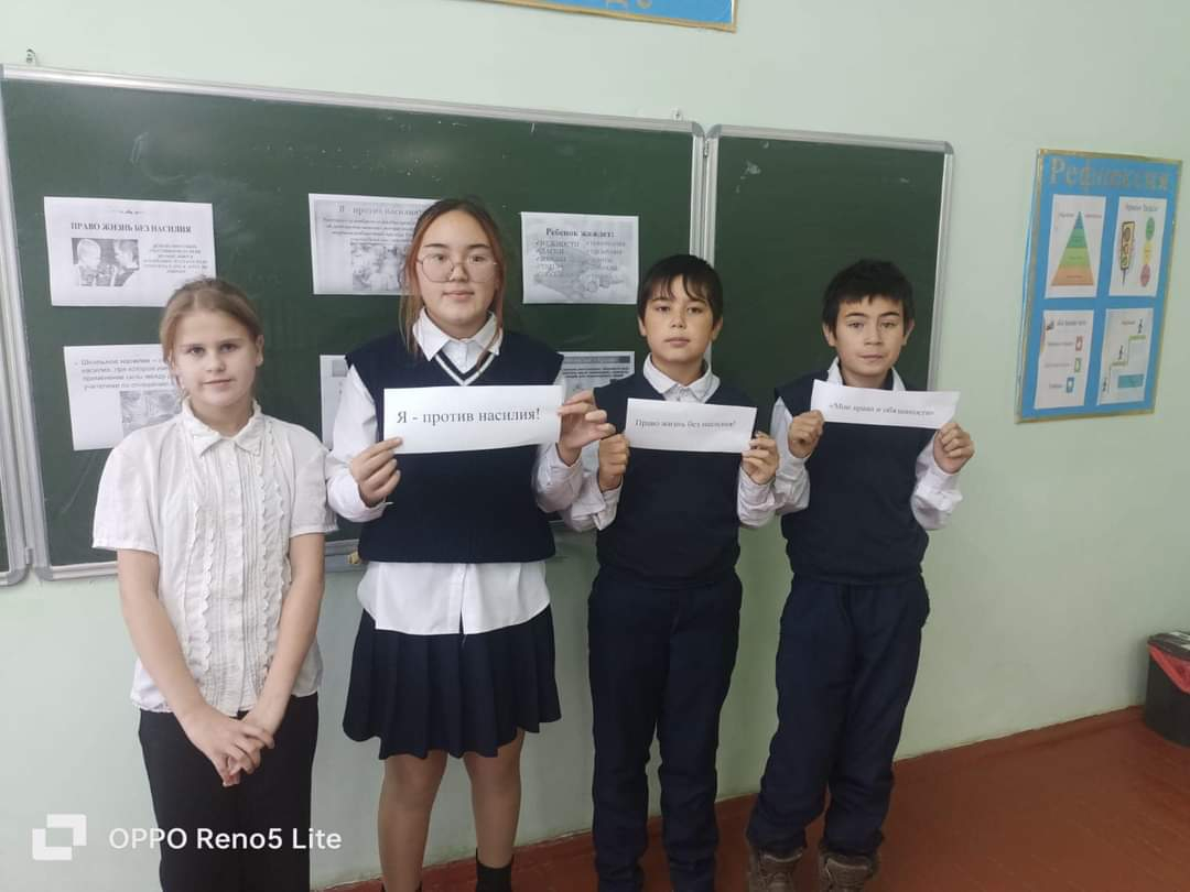 Мектепте 13.11.2023 жылы "Қатігездіксіз және зорлық-зомбылықсыз балалық шақ" атты республикалық ақпараттық науқан аясында 5-9 сыныптар арасында сынып сағаттары өткізілді.