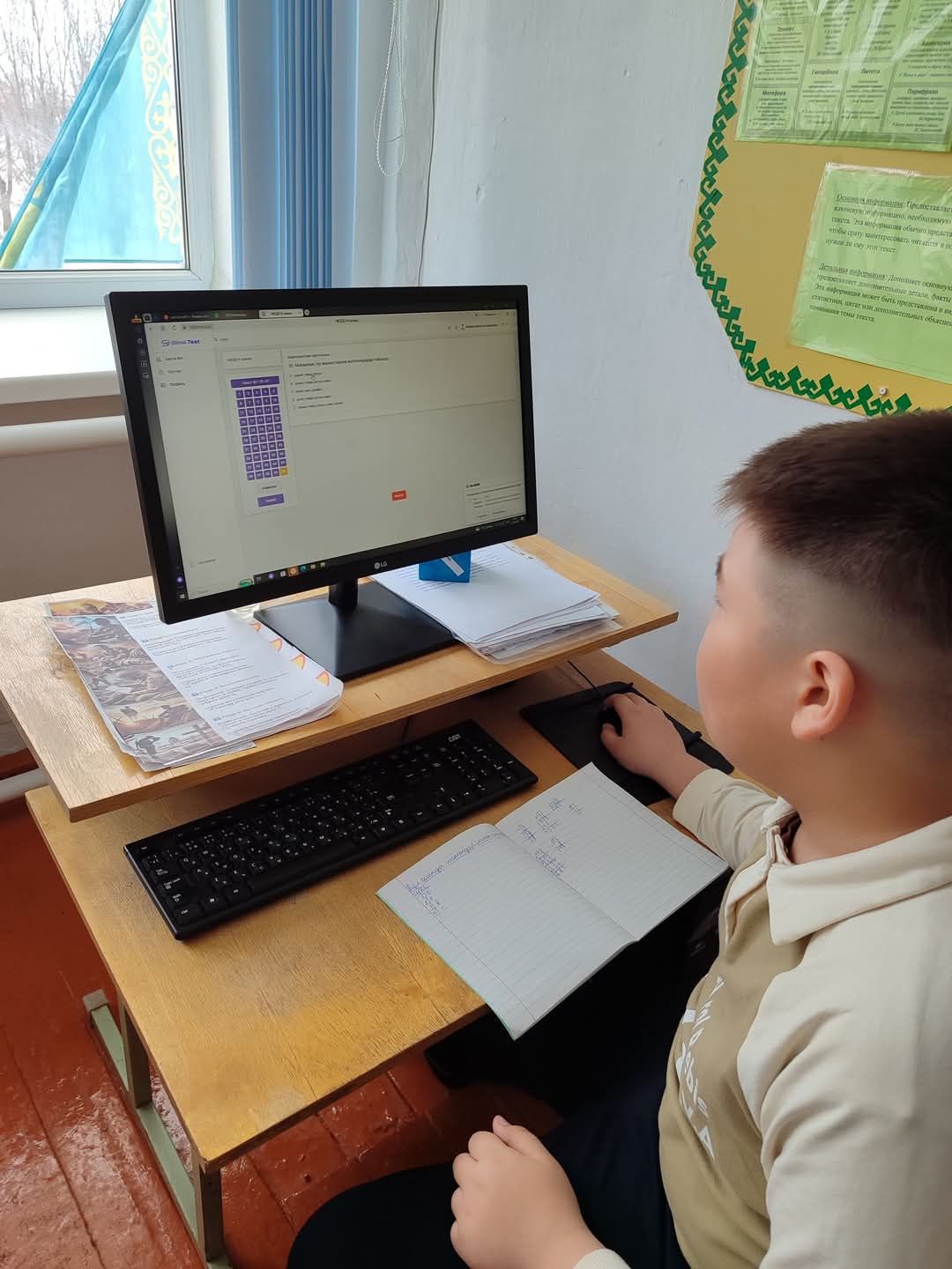 Бүгін мектебіміздің 4–9 сынып оқушылары Білім алушылардың білім жетістіктеріне мониторинг жүргізу (ББЖМ) аясында сынама тестілеуден өтті.