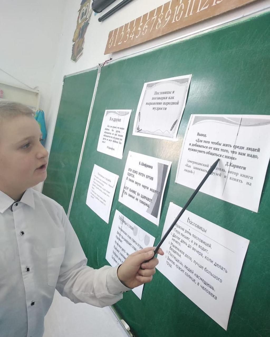 ОШ им.М.Дулатулы в 4 русском классе был проведен классный час на тему: ”Давайте прочитаем пословицу и отгадаем загадку”. Цель: познакомить учащихся с понятием пословица и загадка; дать п…