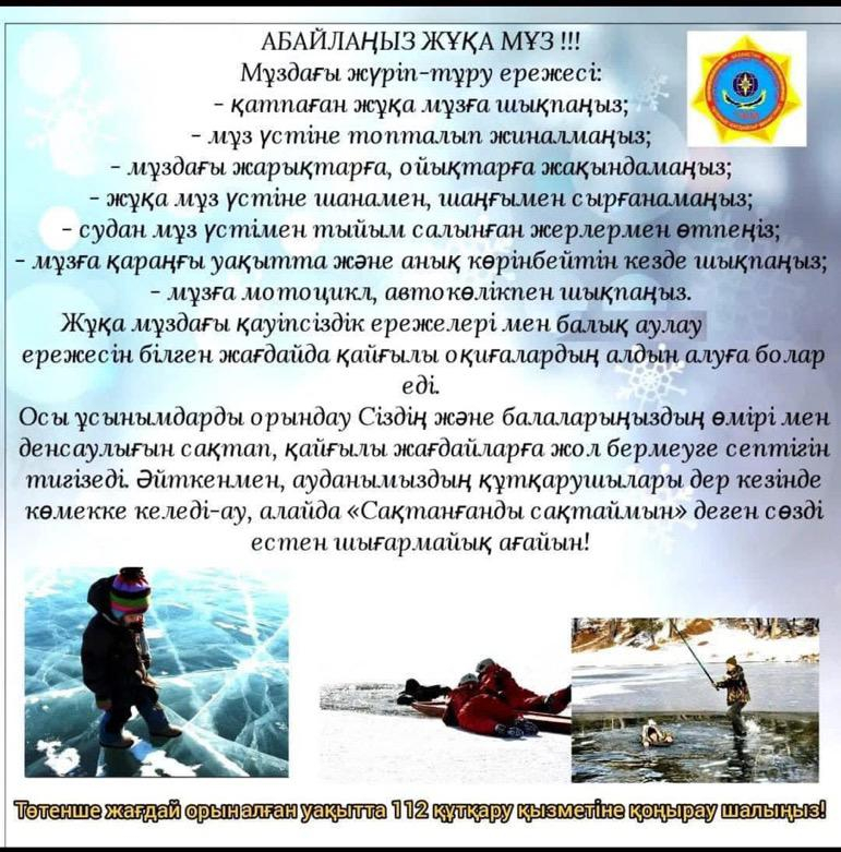 Мұз айдыны мен су қоймаларынан сақ болыңыздар!