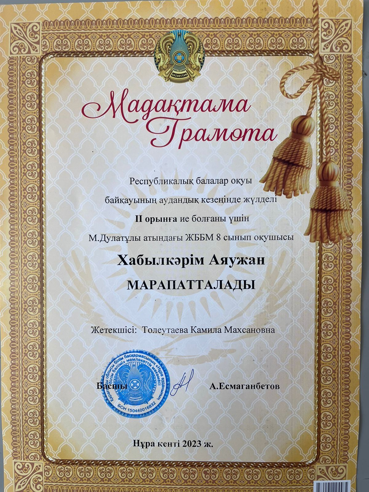 М.Дулатұлы атындағы ЖББ мектебінде 5 қыркүйек-Қазақстан халқы тілдер күніне орай Жалпыоблыстық ашық диктант өтті. Мақсаты: мемлекеттік тілдің қолданылу аясын кеңейту арқылы қазақстандық бірегейлі…