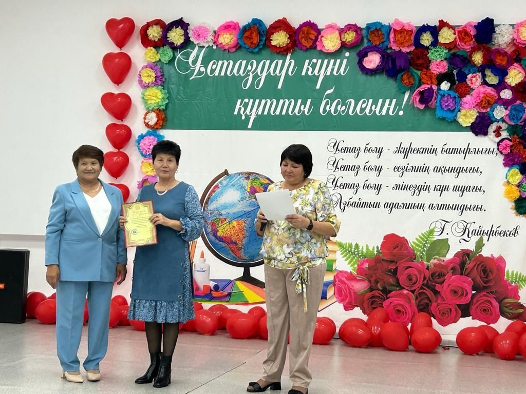 Ұстаздар күніне орай жас ұрпаққа білім мен тәрбие беруде қосқан үлесі, білім беру саласындағы көптеген жетістіктері мен шығармашылық еңбегі үшін Міржақып Дулатұлы атындағы ЖББ мектебінің мектеп дире…
