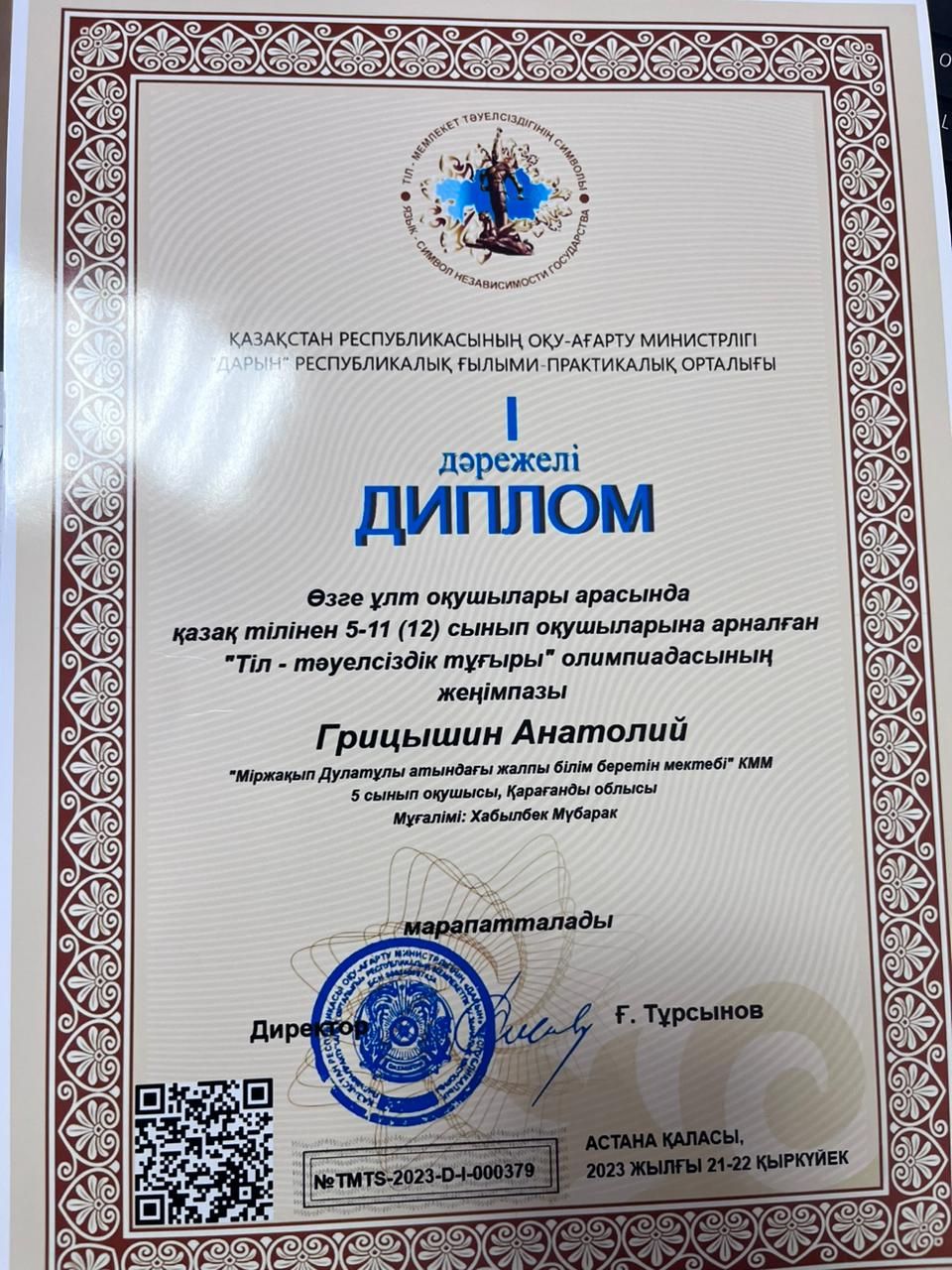 "Тіл-тәуелсіздік тұғыры" олимпиадасына қатысып, жүлделі орындарға ие болды
