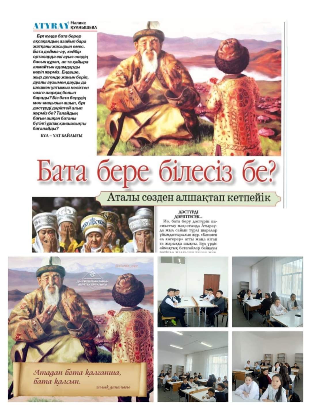 7 желтоқсан-"Ақсақалдар және бата беру күніне" арнап 1-10 сыныптары ауыл ақсақалдарын шақырып, батасын алса, кейбір сыныптар өздері бата жаттап, бата беріп, сынып сағаттарын өткізді. …