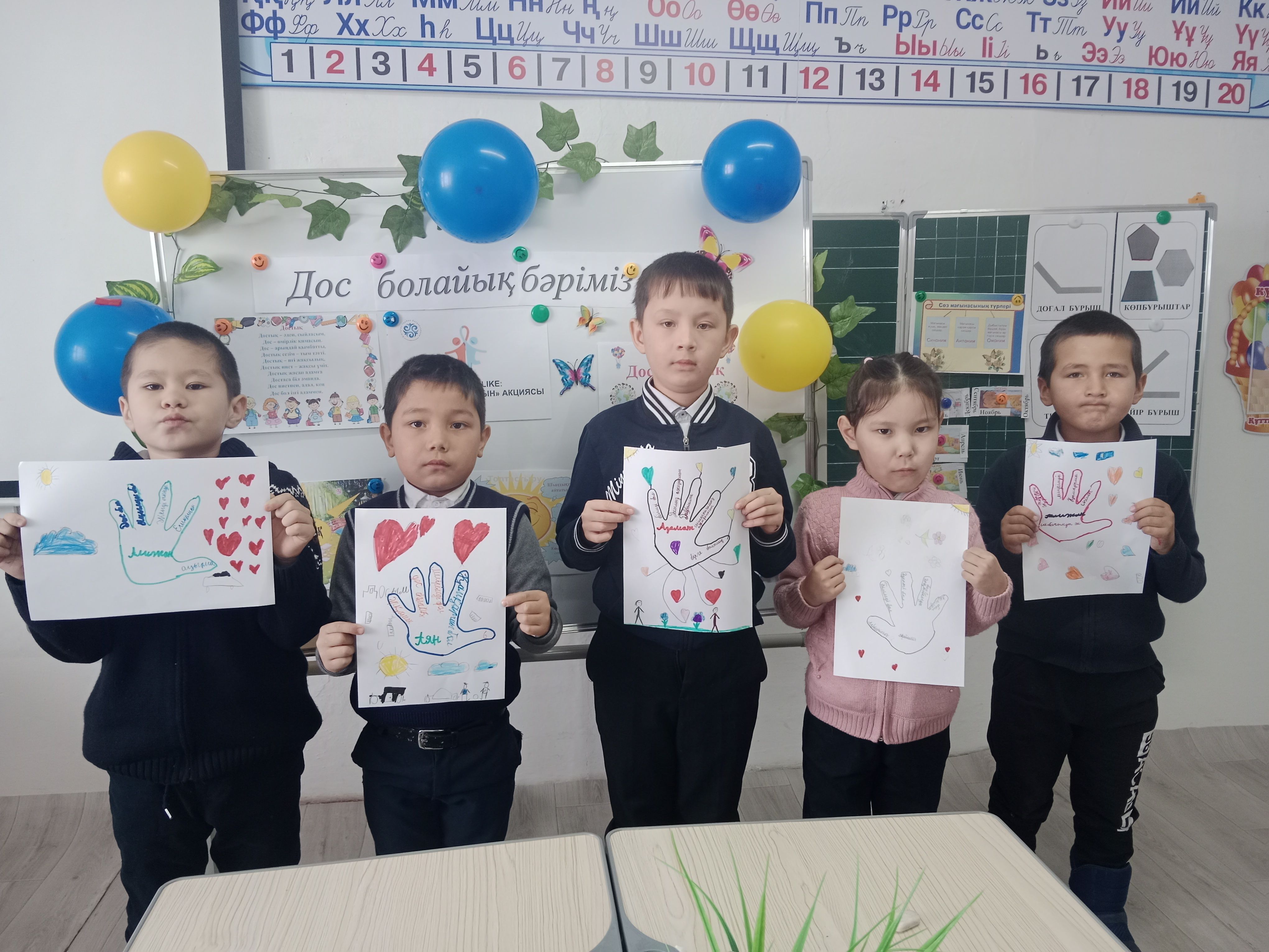 Ө. Тұрлыбеков атындағы БМ. Қаңтар айының 26-шы жұлдызында мектебімізде "ДОСБОЛLIKE" акциясы аясында оқушылар бір-бірлеріне тілектерін жазды.