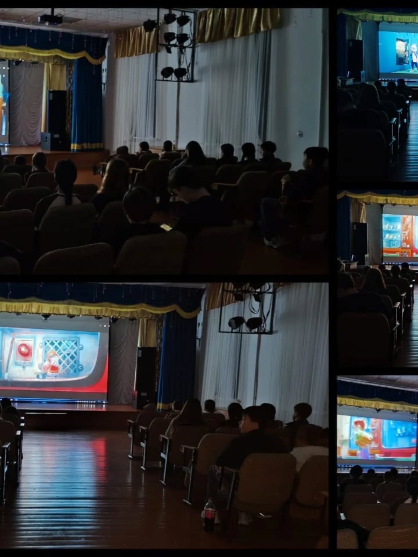 Мектебімізде әр сейсенбі күні түстен кейін нағыз кинотеатрдағыдай оқушылар үшін фильмдер мен мультфильмдер көрсетіледі!