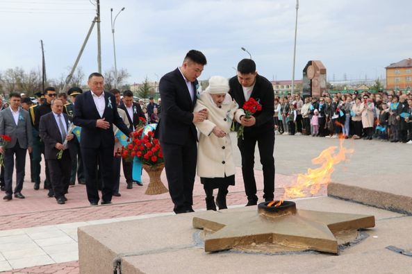 2024 жылғы 7 мамырда "қайғыға батқан ана" обелискінің алдындағы алаңда Ұлы Жеңістің 79 жылдығына, Отан қорғаушылар күніне арналған жаппай қорғаныс және әскери - патритотикалық жұмыс айлығы…