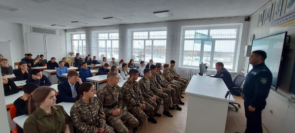 Қарағанды облысы білім басқармасының Осакаров ауданының білім бөлімінің "№ 12 тірек мектебі ( ресурстық орталығы) " КММ-де Осакаров ауданының ББ инспекторы полиция майоры М. К. Курамысов м…