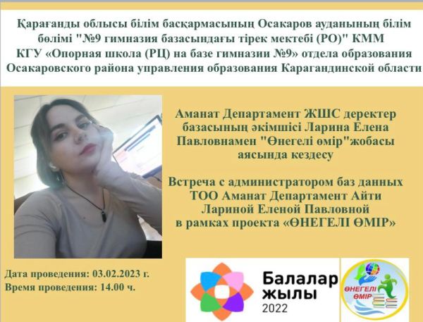 «№9 гимназия базасындағы тірек мектебі (РО)» КММ-де «ӨНЕГЕЛІ ӨМІР» жобасы аясында біл…