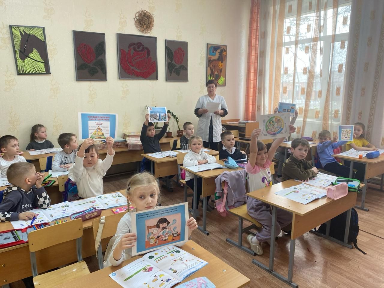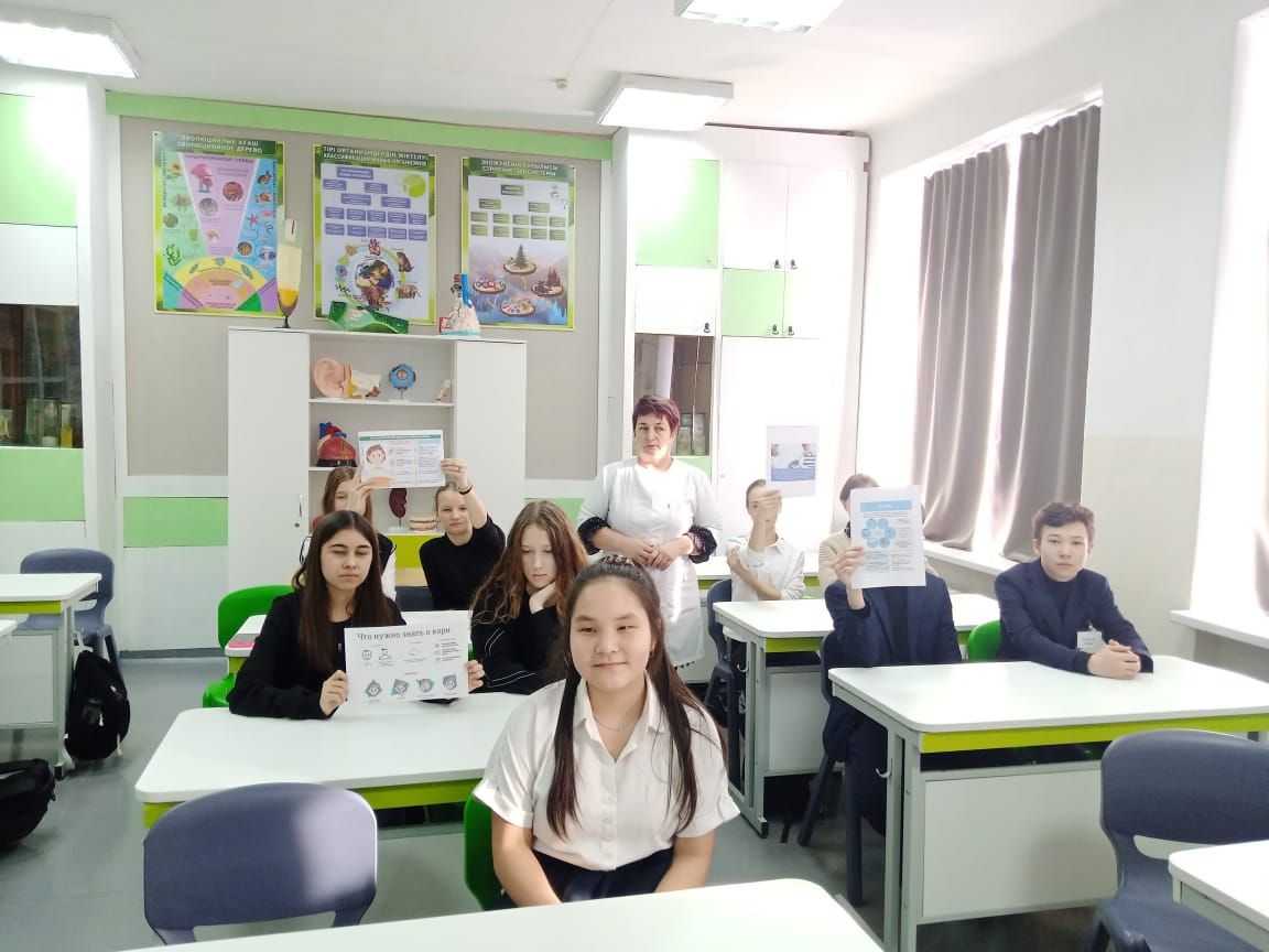 Осакаровка кентінің № 9 гимназиясының медицина қызметкері А.А.Леськова оқушылармен дұрыс рационалды және дұрыс тамақтану туралы әңгімелесті. Біздің әңгімеміздің дивизы «Кто долго жует,тот долг…