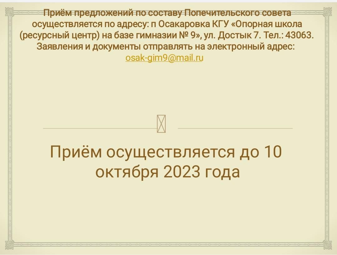 Қарағанды облысы білім басқармасының Осакаров ауданының білім бөлімінің «№ 9 гимназия базасындағы тірек мектебі (РО)" КММ орыс тілінде оқытатын бос лауазымдарға орналасуға ашық конкурс жа…