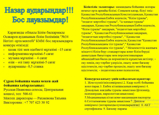 16 июня 2022 года в "КГУ "ОСШ №34" , состоялось торжественное вручение аттестатов выпускникам 9 класса Айткенову Береке, Гумханову Рамзану, Шторк Валерии.