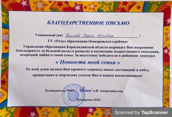 Ученица 7 класса КГУ "ОСШ №34" ОО Осакаровского района УО Карагандинской области Абаханова Диана Дархановна приняла участие в дистанционном районном конкурсе "Ценности моей семьи"…