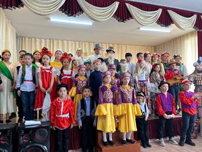 Дети пели, танцевали, играли национальные игры, а так же была исценировка сказки "Чудесная шуба Алдара - косе" в которой приняли участие ученики 8 класса. Мероприятие было закончено чаепит…
