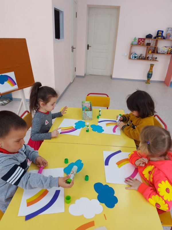 Балаларға "Әтеш пен бояулар" ертегісі оқылды, оқығаннан кейін балалар басты кейіпкерді бояды. Балалар "кемпірқосақ" аппликациясын орындап, "Бояу ұрлаушылар" мультфильмі…