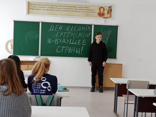 17 қаңтарда "№15 ЖББМ" КММ-де 9-сыныбында "Мен - елдің болашағымын"тақырыбында сынып сағаты өтті.