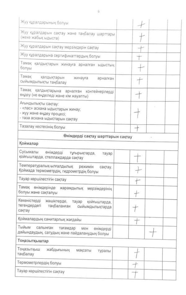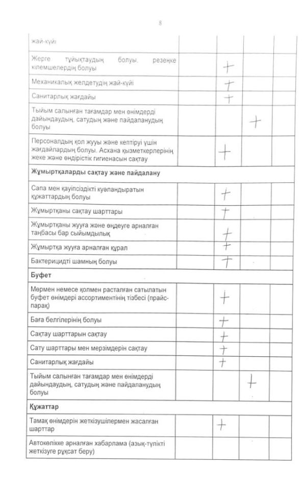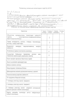 Тамақтану сапасына мониторинг жүргізу актісі. Қазан айы