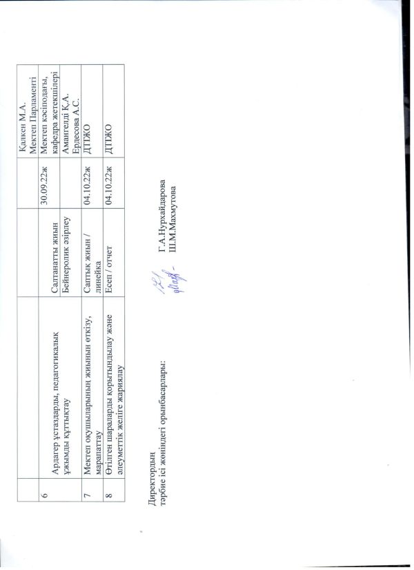 Ю.А.Гагарин атындағы мектеп-лицейінің Мұғалімдер күні аясында "Дублер күніне" арналған іс-шара жоспары 2022-2023 оқу жылы