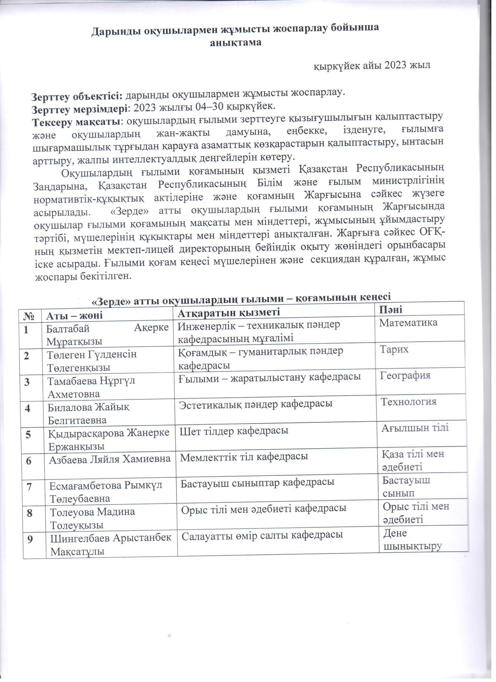"Зерде" атты оқушылардың ғылыми қоғамының мүшелері