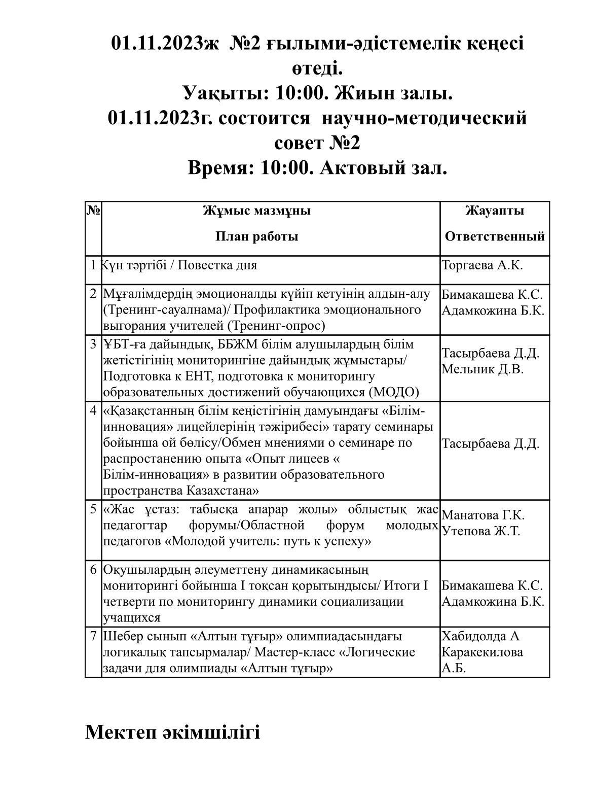 МЕКТЕПІШІЛІК БАҚЫЛАУ ЖОСПАРЫ 2023-2024ж