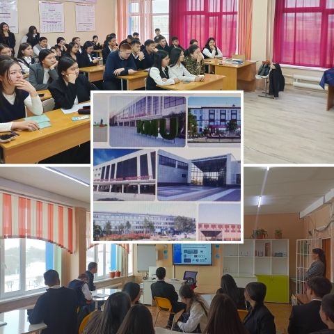 Ю.А.Гагарин атындағы мектеп-лицейінде "Абай Құнанбаев атындағы Саран жоғары гуманитарлық-техникалық колледжінің" өкілі Хайрулин И.М кәсіби бағдар беру мақсатында 9 сынып оқушыларымен кезде…
