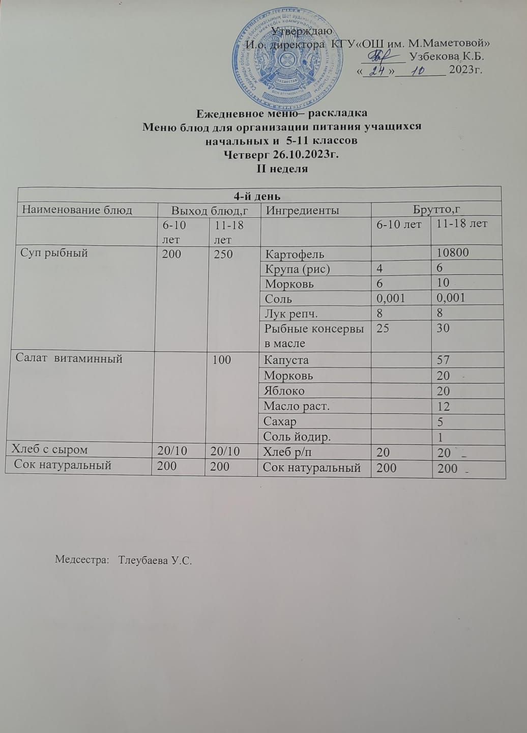 МЕНЮ ДЛЯ ОРГАНИЗАЦИИ БЕСПЛАТНОГО ПИТАНИЯ УЧАЩИХСЯ ДЛЯ НАЧАЛЬНЫХ КЛАССОВ И 5 - 11 КЛАССОВ СОЦИАЛЬНЫХ ДЕТЕЙ НА 26.10.2023