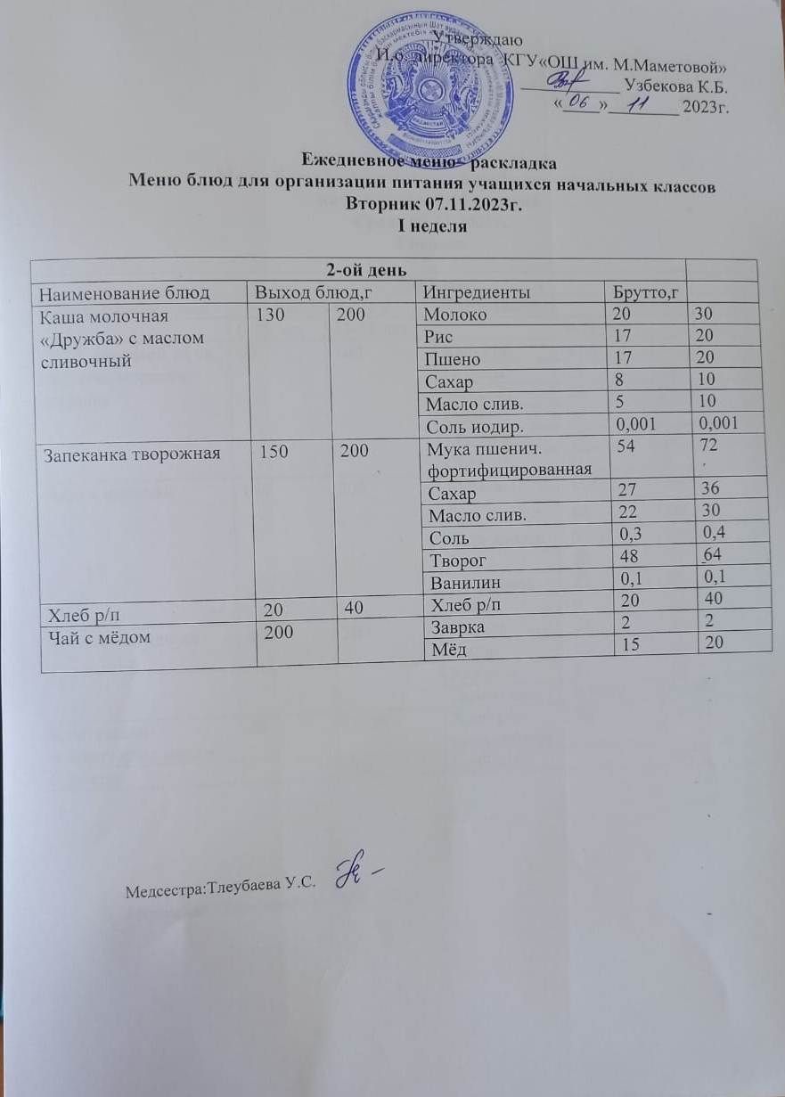 МЕНЮ ДЛЯ ОРГАНИЗАЦИИ БЕСПЛАТНОГО ПИТАНИЯ УЧАЩИХСЯ ДЛЯ НАЧАЛЬНЫХ КЛАССОВ И 5 - 11 КЛАССОВ СОЦИАЛЬНЫХ ДЕТЕЙ НА 07.11.2023