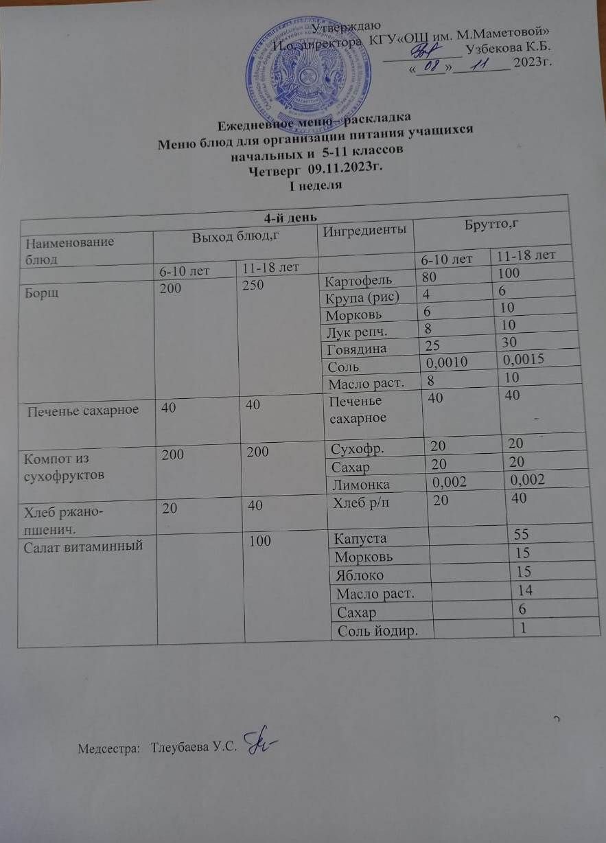 МЕНЮ ДЛЯ ОРГАНИЗАЦИИ БЕСПЛАТНОГО ПИТАНИЯ УЧАЩИХСЯ ДЛЯ НАЧАЛЬНЫХ КЛАССОВ И 5 - 11 КЛАССОВ СОЦИАЛЬНЫХ ДЕТЕЙ НА 09.11.2023
