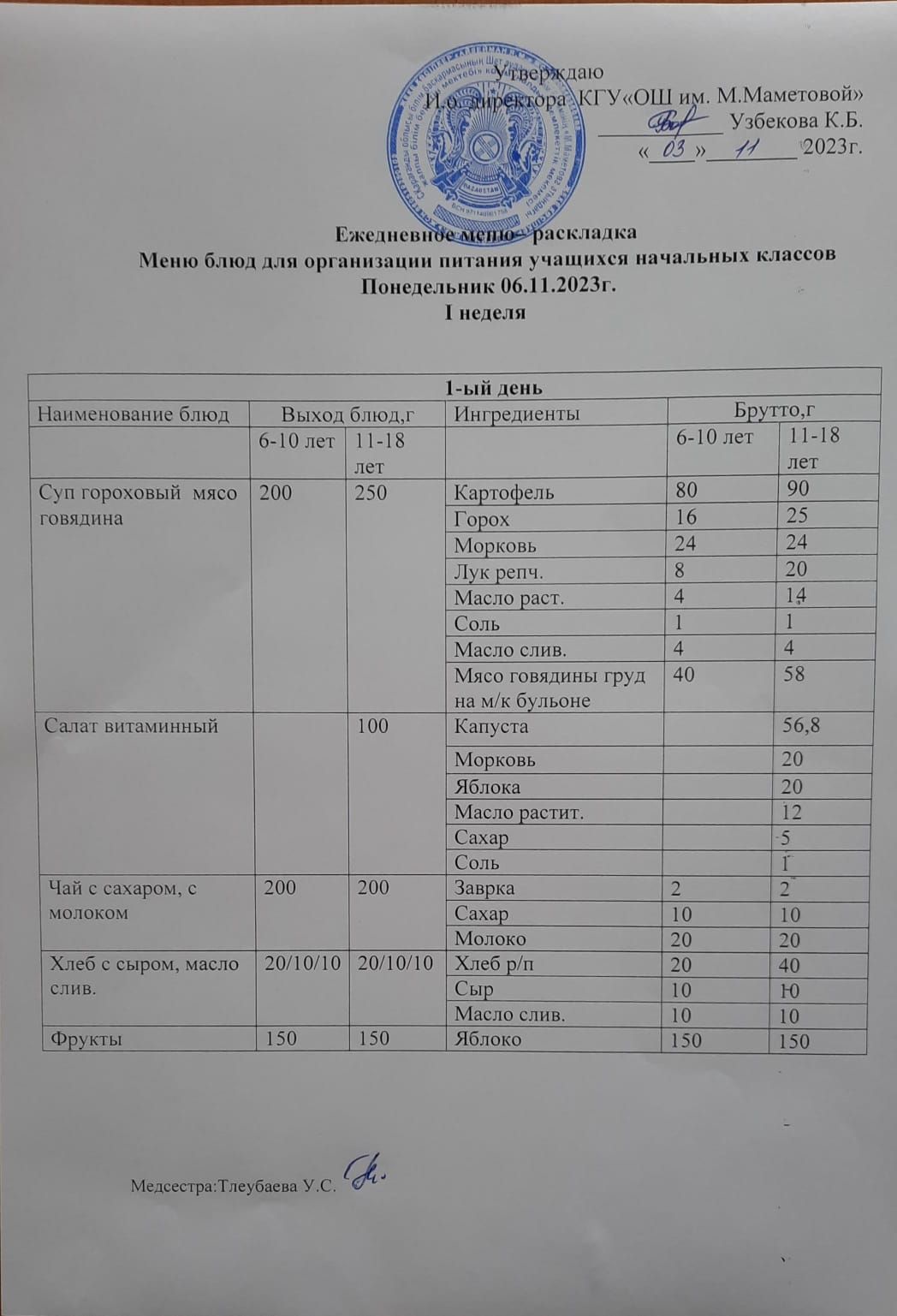 МЕНЮ ДЛЯ ОРГАНИЗАЦИИ БЕСПЛАТНОГО ПИТАНИЯ УЧАЩИХСЯ ДЛЯ НАЧАЛЬНЫХ КЛАССОВ И 5 - 11 КЛАССОВ СОЦИАЛЬНЫХ ДЕТЕЙ НА 06.11.2023