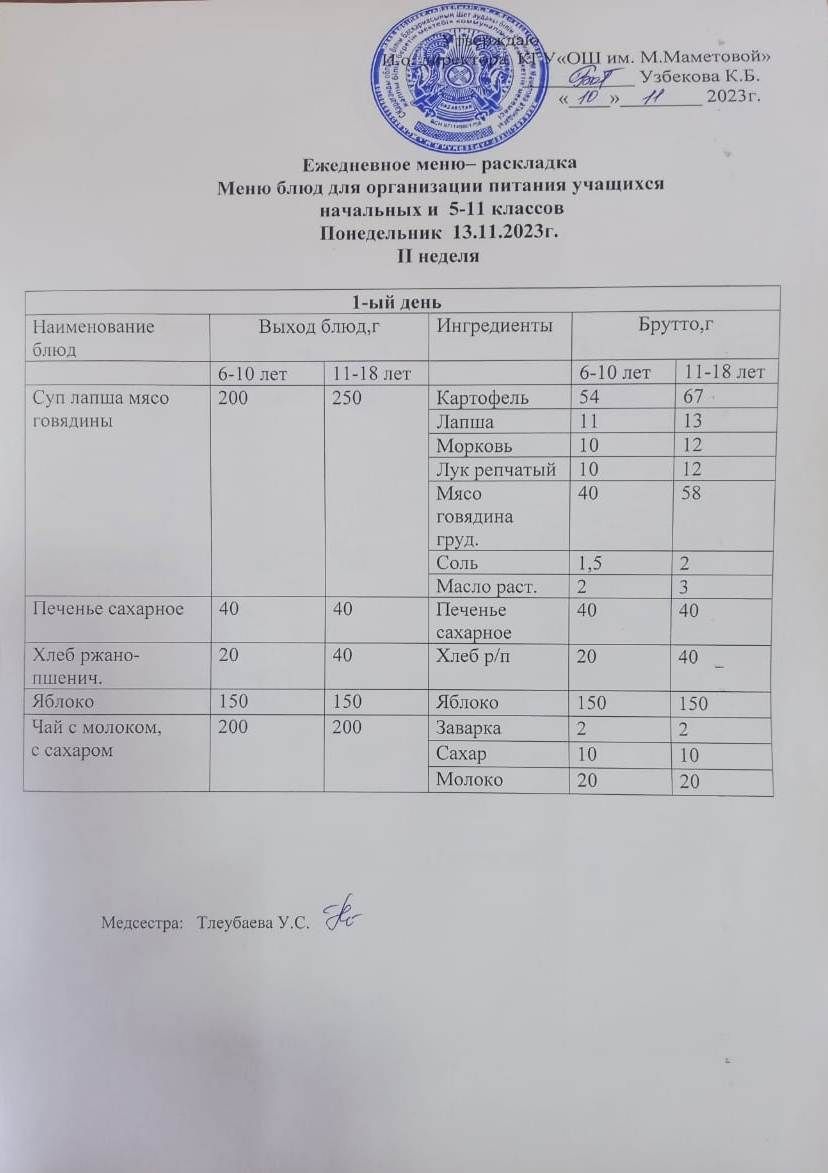 МЕНЮ ДЛЯ ОРГАНИЗАЦИИ БЕСПЛАТНОГО ПИТАНИЯ УЧАЩИХСЯ ДЛЯ НАЧАЛЬНЫХ КЛАССОВ И 5 - 11 КЛАССОВ СОЦИАЛЬНЫХ ДЕТЕЙ НА 13.11.2023