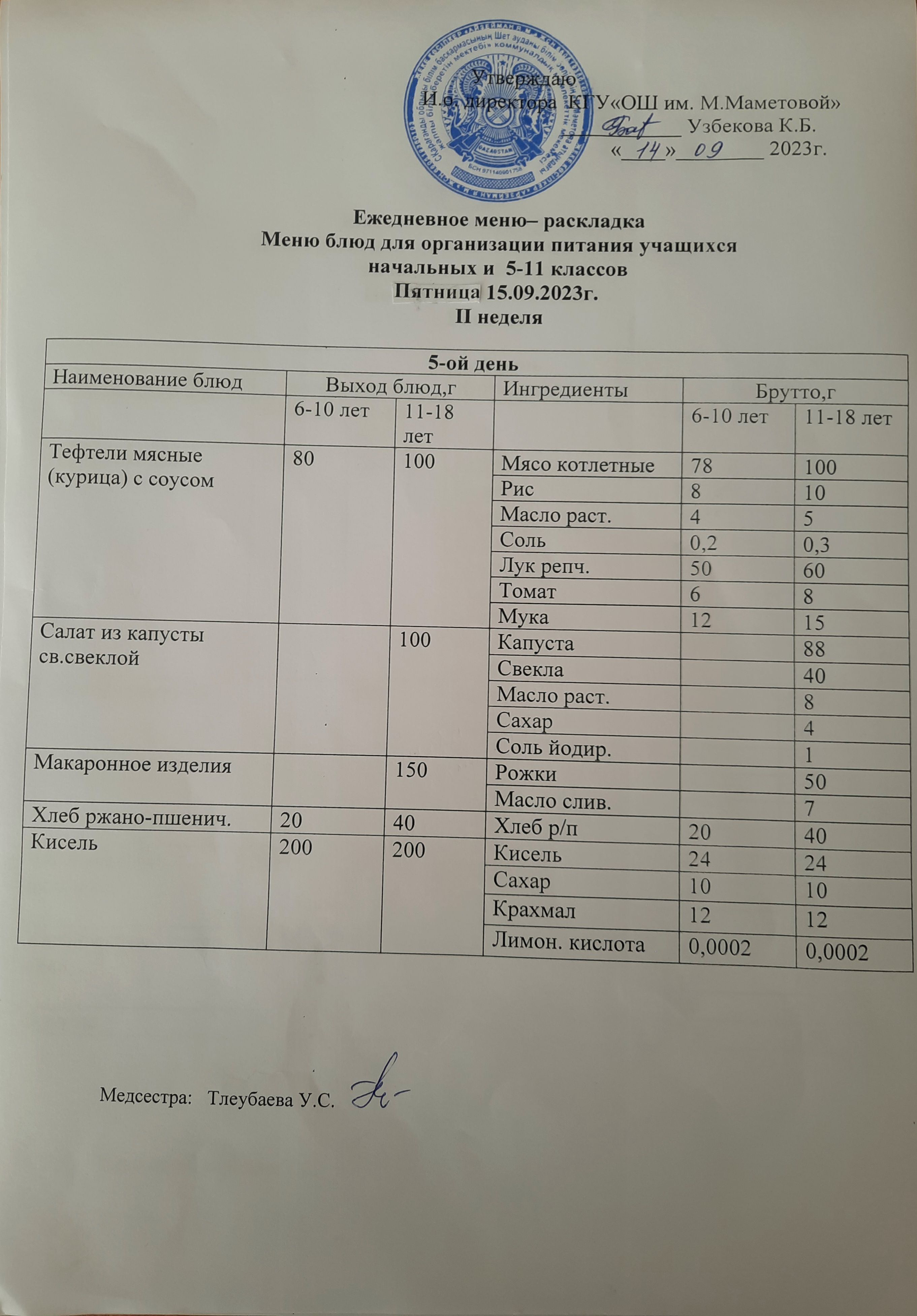 МЕНЮ ДЛЯ ОРГАНИЗАЦИИ БЕСПЛАТНОГО ПИТАНИЯ УЧАЩИХСЯ ДЛЯ НАЧАЛЬНЫХ КЛАССОВ И 5 - 11 КЛАССОВ СОЦИАЛЬНЫХ ДЕТЕЙ НА 13.09.2023