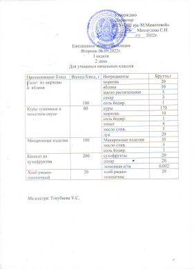 Ежедневное меню. 06.09.2022гг.