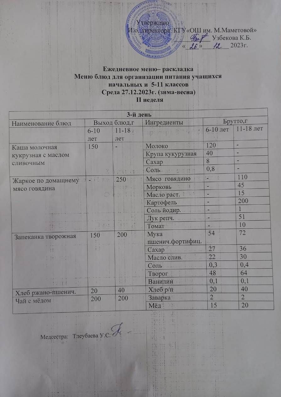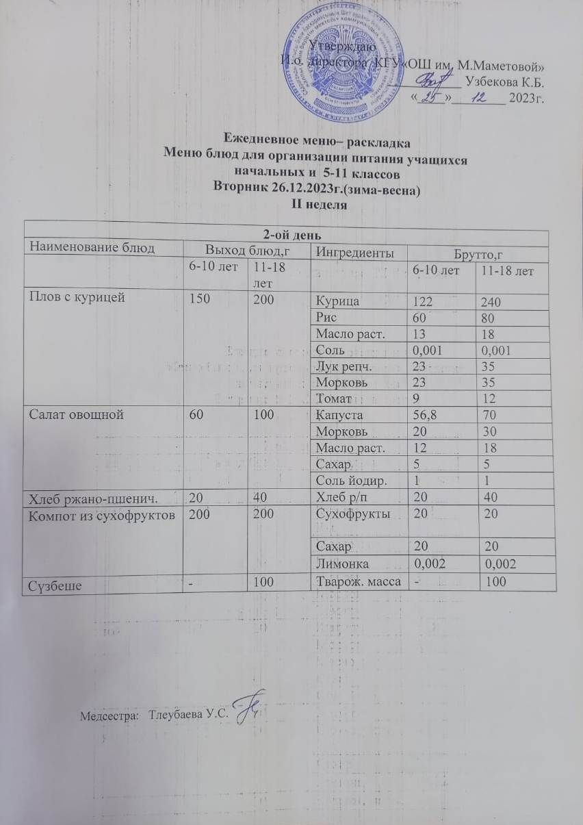 26.12.2023 БАСТАУЫШ СЫНЫПТАР МЕН 5 – 11 СЫНЫПТЫҢ ӘЛЕУМЕТТІК ОСАЛ ТОП ОҚУШЫЛАРЫНЫҢ ТЕГІН ТАМАҚТАНУЫН ҰЙЫМДАСТЫРУҒА АРНАЛҒАН АС МӘЗІРІ