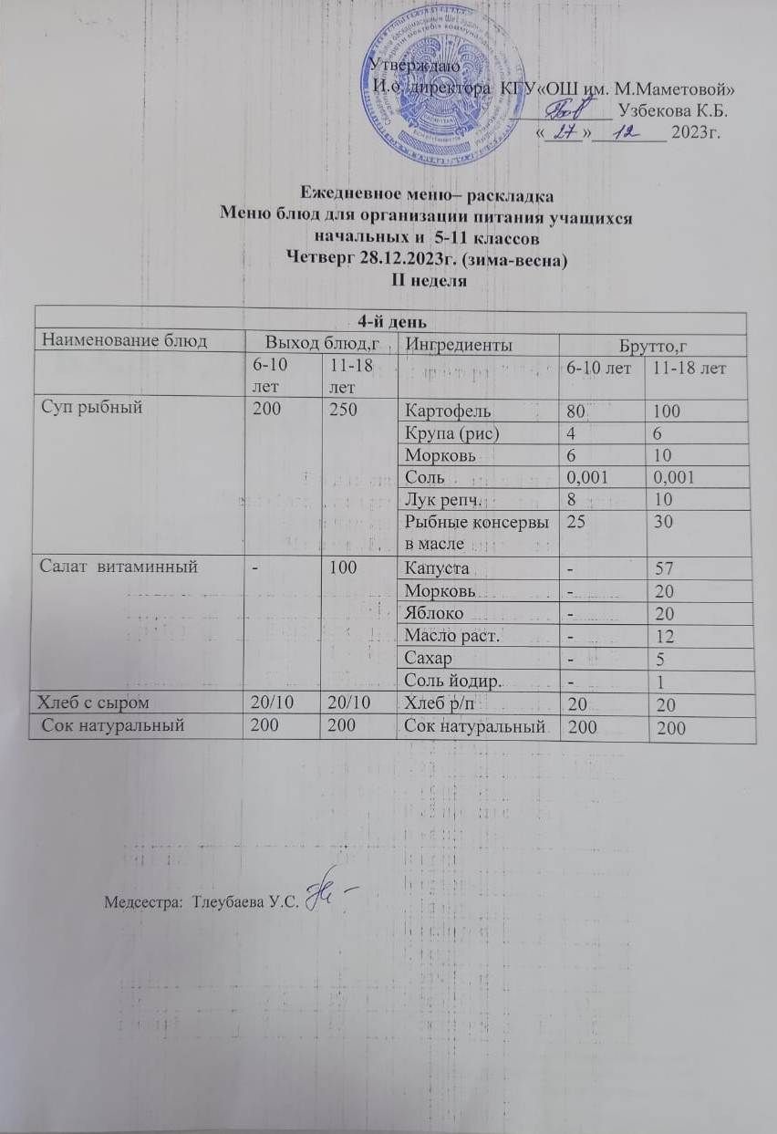28.12.2023 БАСТАУЫШ СЫНЫПТАР МЕН 5 – 11 СЫНЫПТЫҢ ӘЛЕУМЕТТІК ОСАЛ ТОП ОҚУШЫЛАРЫНЫҢ ТЕГІН ТАМАҚТАНУЫН ҰЙЫМДАСТЫРУҒА АРНАЛҒАН АС МӘЗІРІ