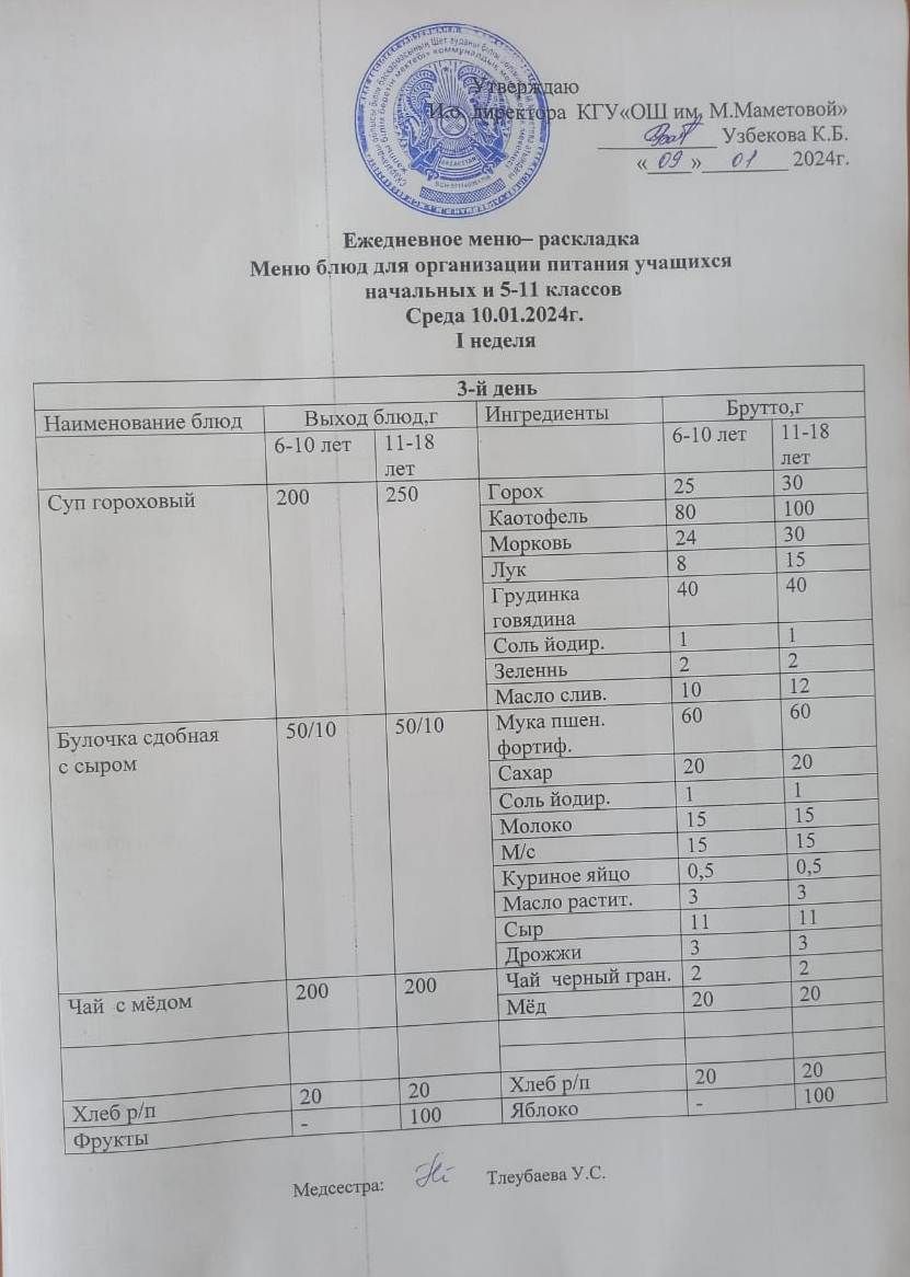 10.01.2024 БАСТАУЫШ СЫНЫПТАР МЕН 5 – 11 СЫНЫПТЫҢ ӘЛЕУМЕТТІК ОСАЛ ТОП ОҚУШЫЛАРЫНЫҢ ТЕГІН ТАМАҚТАНУЫН ҰЙЫМДАСТЫРУҒА АРНАЛҒАН АС МӘЗІРІ