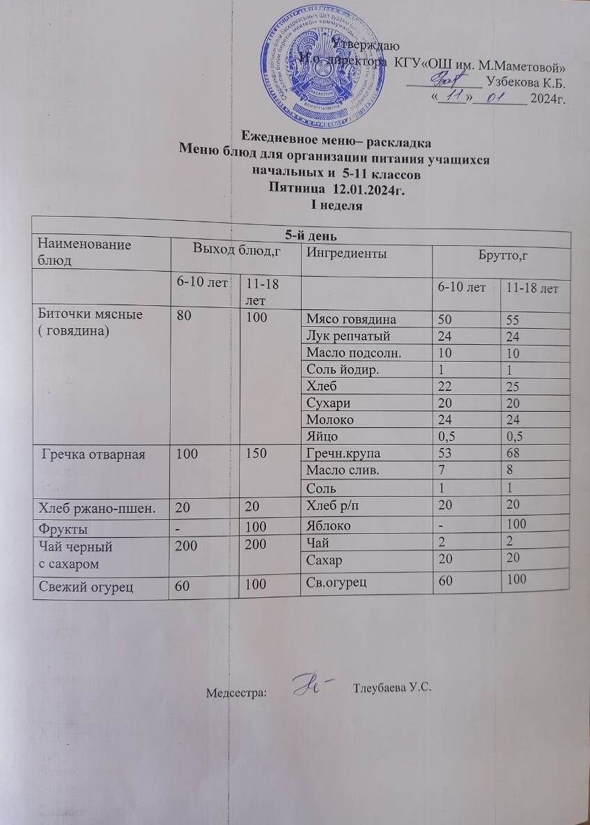 12.01.2024 БАСТАУЫШ СЫНЫПТАР МЕН 5 – 11 СЫНЫПТЫҢ ӘЛЕУМЕТТІК ОСАЛ ТОП ОҚУШЫЛАРЫНЫҢ ТЕГІН ТАМАҚТАНУЫН ҰЙЫМДАСТЫРУҒА АРНАЛҒАН АС МӘЗІРІ