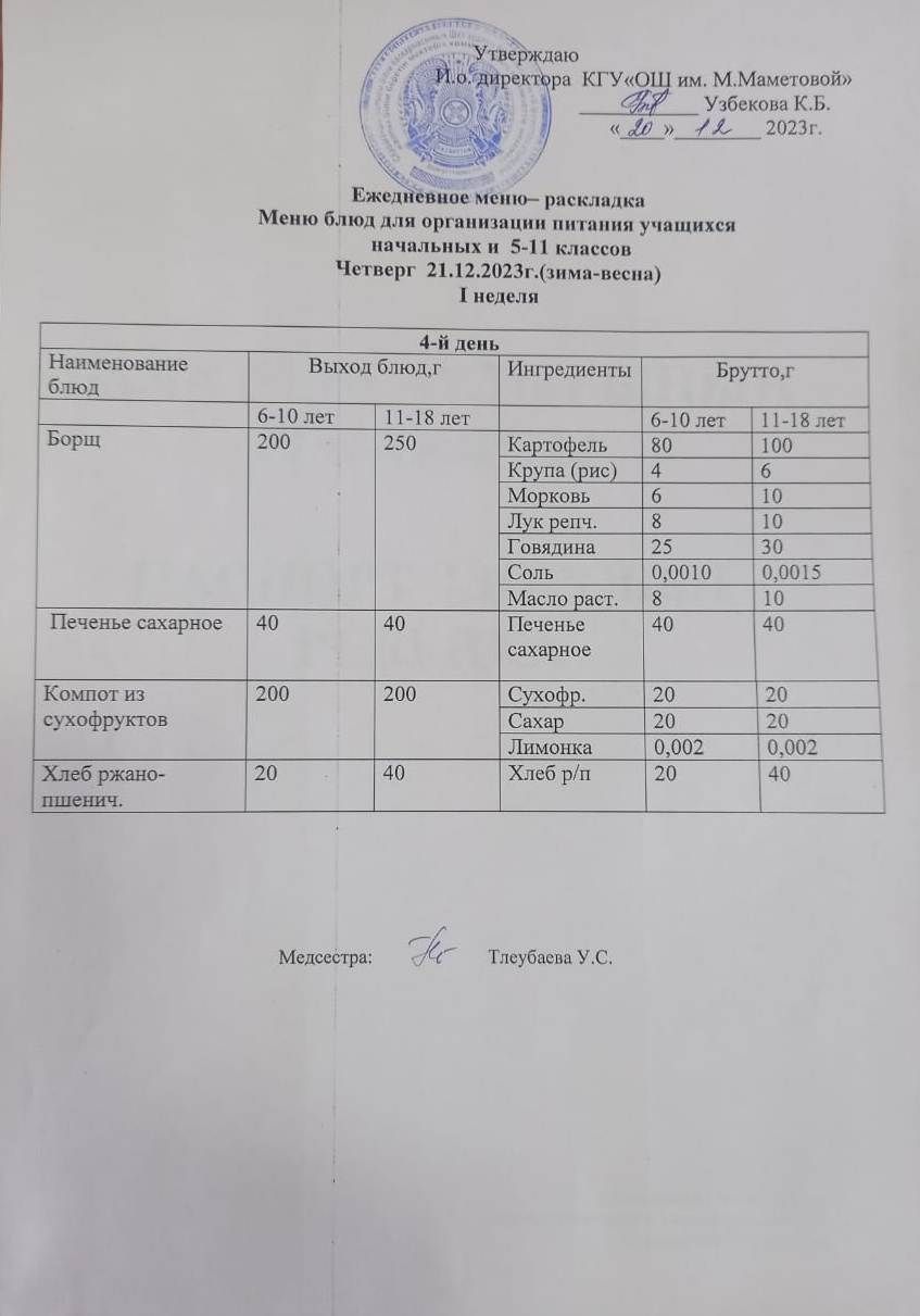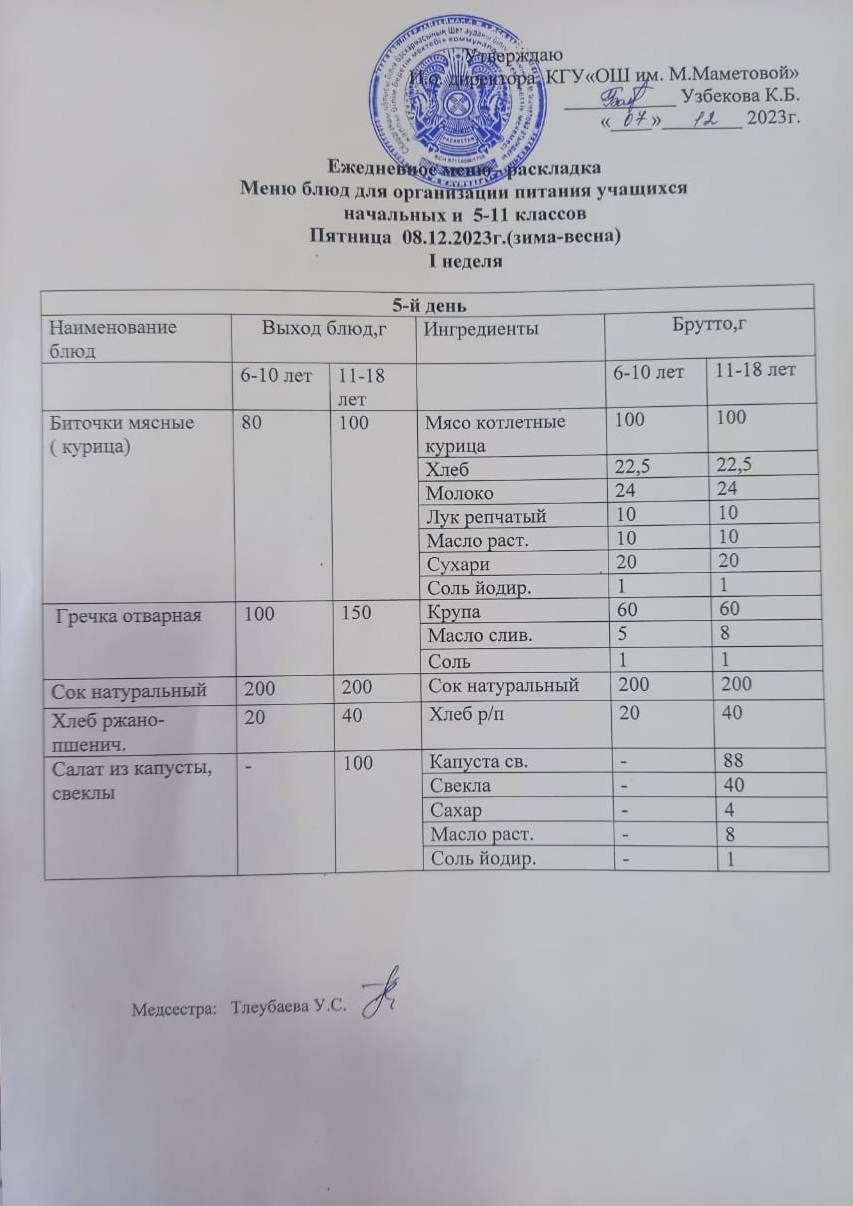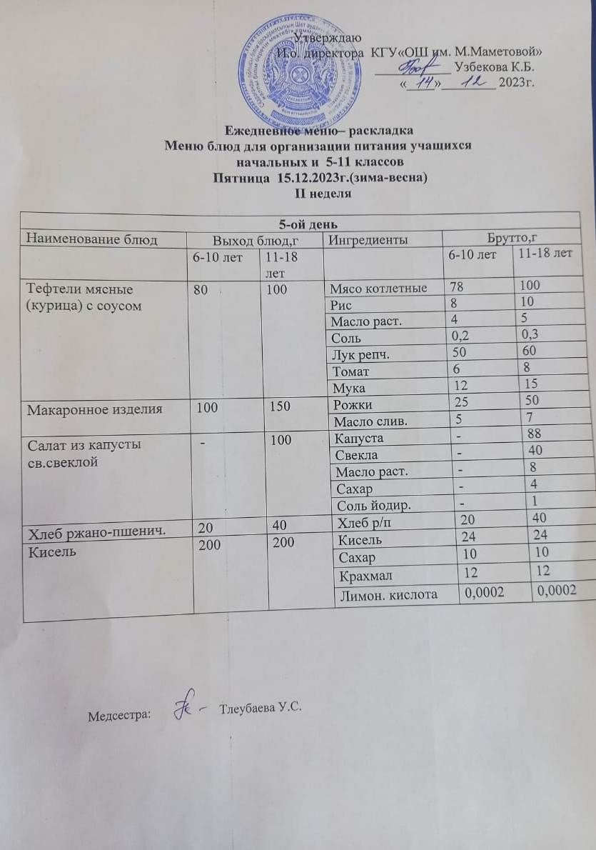МЕНЮ ДЛЯ ОРГАНИЗАЦИИ БЕСПЛАТНОГО ПИТАНИЯ УЧАЩИХСЯ ДЛЯ НАЧАЛЬНЫХ КЛАССОВ И 5 - 11 КЛАССОВ СОЦИАЛЬНЫХ ДЕТЕЙ НА 11.12.2023